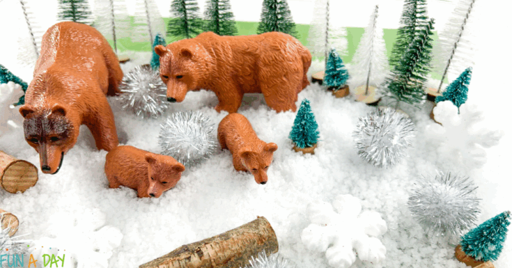 Bear sensory bin for preschool, pre-k, and kindergarten kids. Perfect as part of your winter lesson plans or your next bear theme.