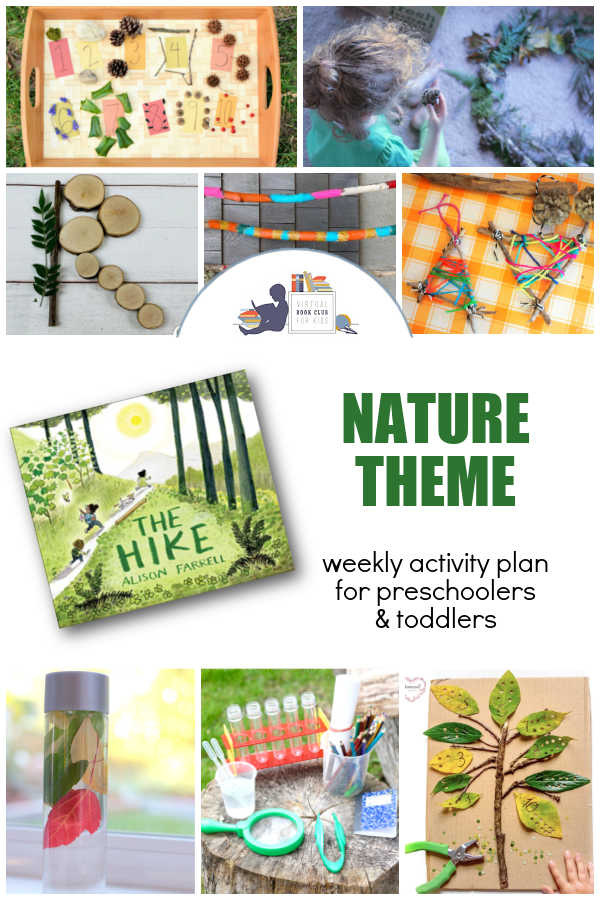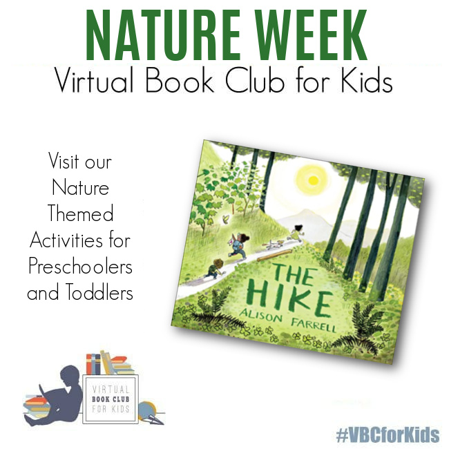 A weekly planner just for you for Nature Week! Celebrate Nature Week with The Hike by Alison Farrell! Explore hands-on preschool activities like sensory play, leaf math, nature art, and alphabet adventures from the Virtual Book Club for Kids.