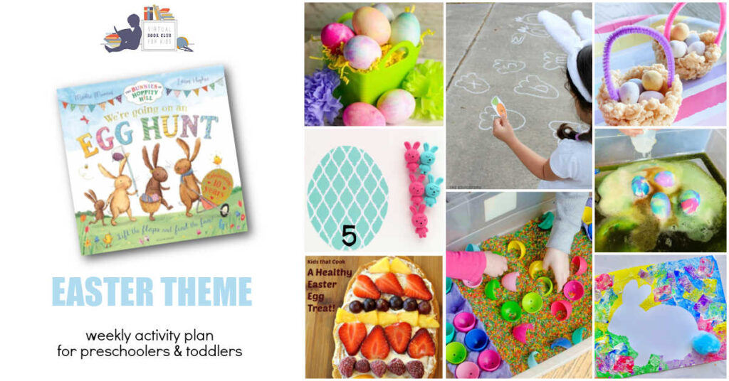 Our theme this week for the Virtual Book Club for Kids with your preschool is EASTER! The featured book is the adorable story called We’re Going on an Egg Hunt by Laura Hughes.